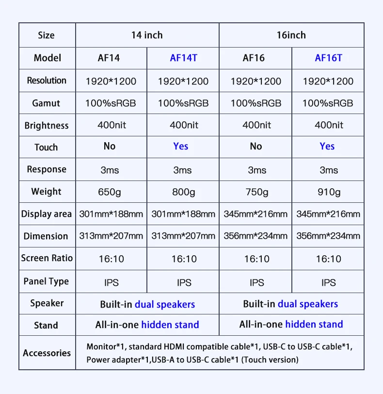 - Touch Function: Yes, Ten-point touch (touch version)