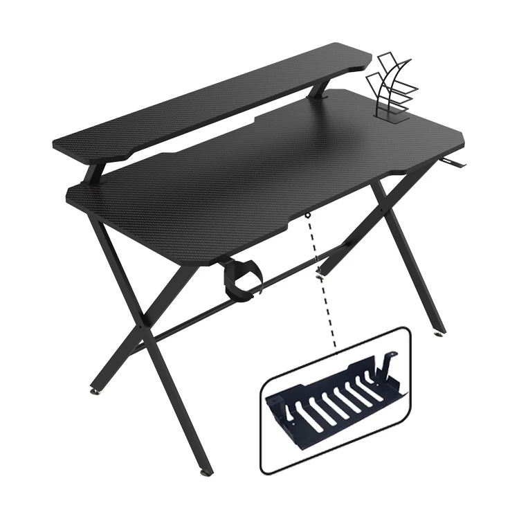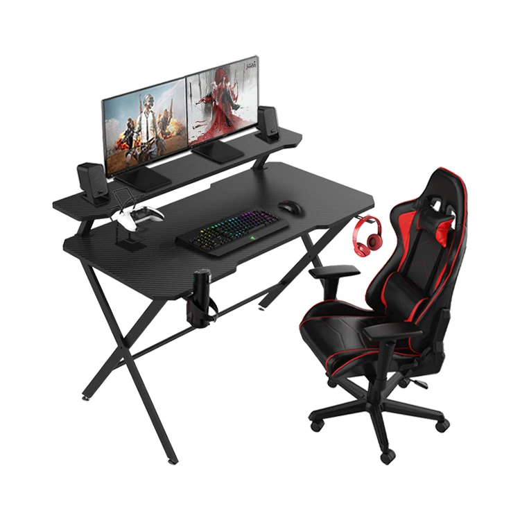 Computer Gaming Table With Monitor Stand Pc E-sports Gamer Desk With Shelf Cool Black Gaming Desk