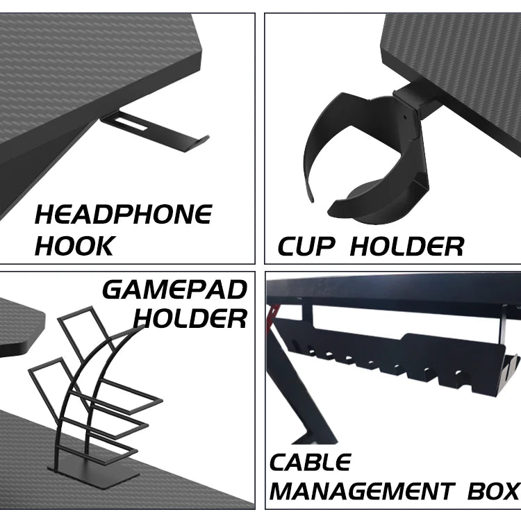 Function: Headphone hook/Cup holder/Gamepad holder/Cable Management Box