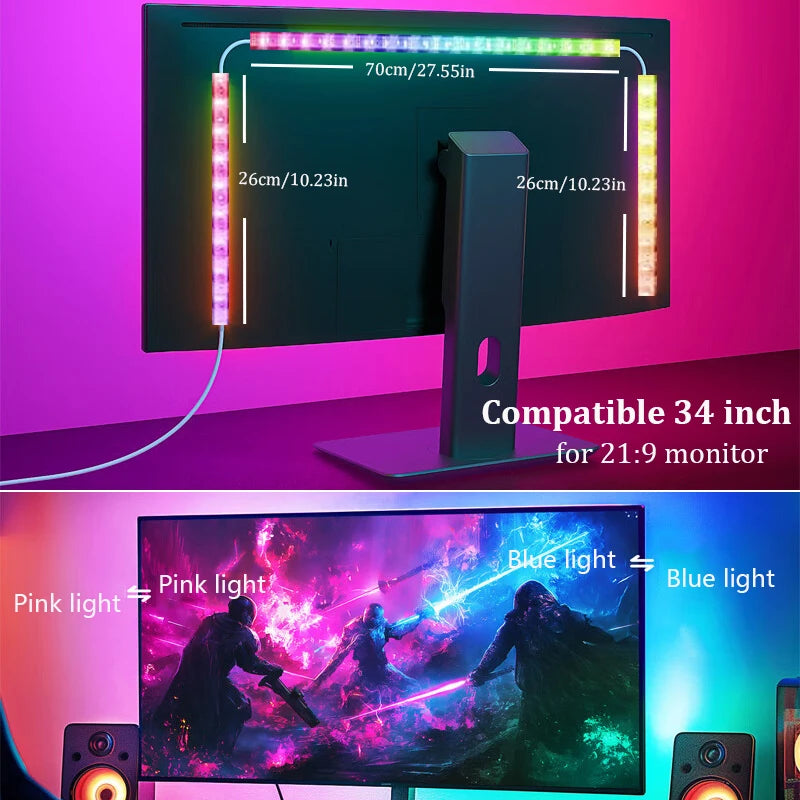 Watching PC in the dark causes the eyes to constantly adjust between a bright screen and dark surrounding area. backlight elevates the ambient light, reducing eye strain and headaches., reducing the eyestrain caused by differences in picture brightness, creates a beautiful bias lighting when watching PC